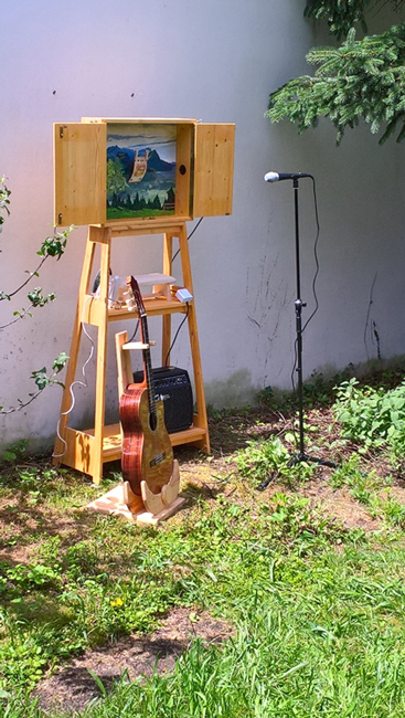 2013 Dada Wiesen, Gemeinschaftsausstellung mein Beitrag, der Besenfühlomat Gelände Pinakothek der Moderne München